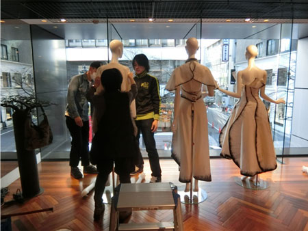どのようなディスプレイが銀座店にふさわしいか話し合いをします。